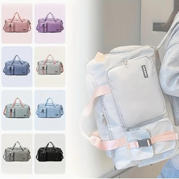 Versatile Women's Travel & Gym Bag - Chic Pink, Multi-Functional Organizer with Large Capacity, Adjustable Shoulder Strap, and Independent Shoe Images |